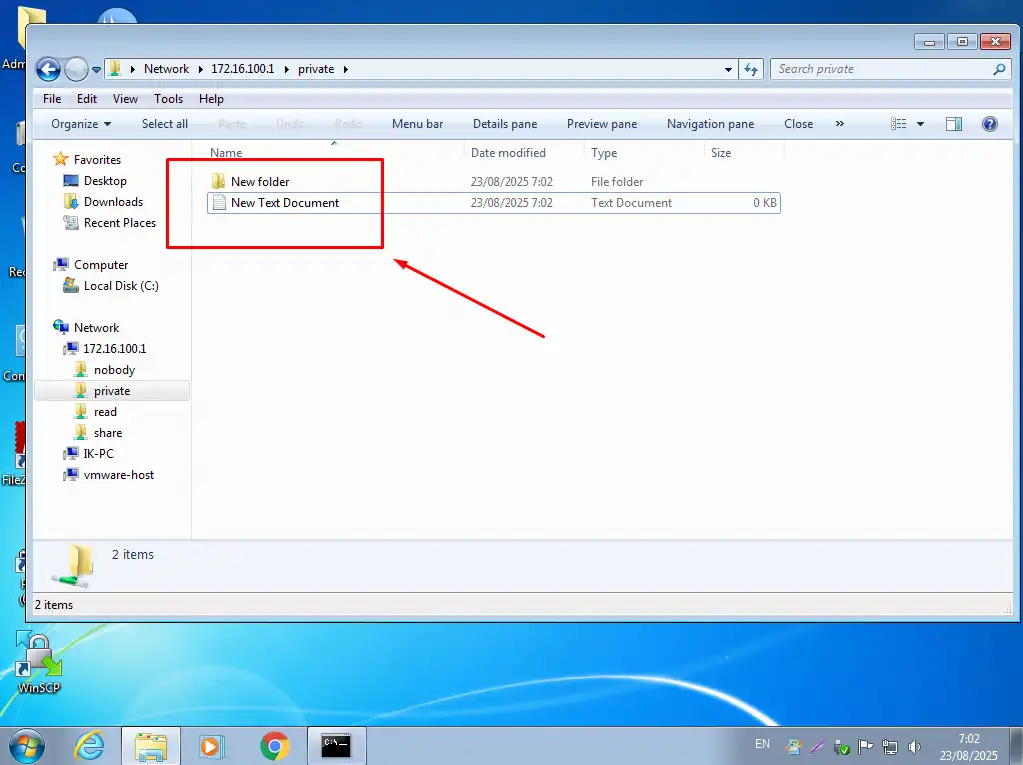Muncul jendela network folder dari samba server yang telah kita buat sebelumnya