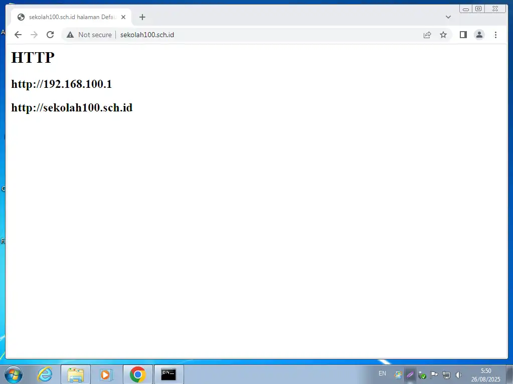 Buka url dengan mengetikkan alamat domain: http://sekolah100.sch.id
