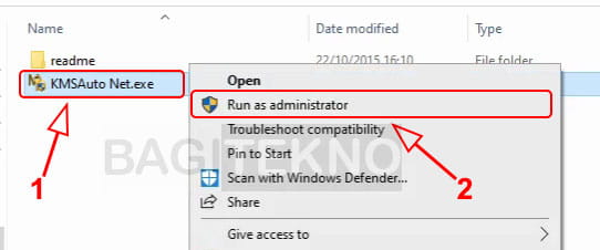- Buka folder hasil ekstrak, kemudian klik kanan file KMSAuto Net lalu klik Run as administrator.