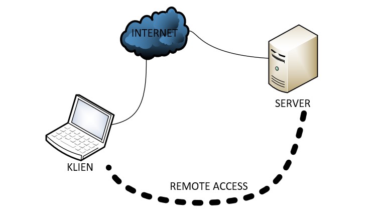 Seorang Administrator Server tidak selalu dapat berinteraksi secara fisik di depan komputer server, mengingat ia mengelola beberapa komputer server yang lokasinya bisa saja berjauhan. Misalnya ketika sedang mengelola server kantor pusat, tiba-tiba terjadi penyusupan akses di server kantor cabang, atau terdapat layanan server kantor cabang yang mati, maka ia harus cepat mengatasinya dengan memanfaatkan remote access untuk memperbaiki layanan server kantor cabang.Dalam hal ini komputer yang akan mengakses harus terkoneksi dengan server terlebih dahulu, entah melalui jaringan lokal maupun jaringan Internet.