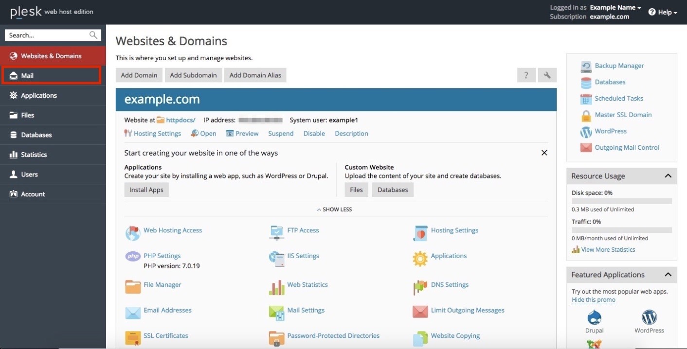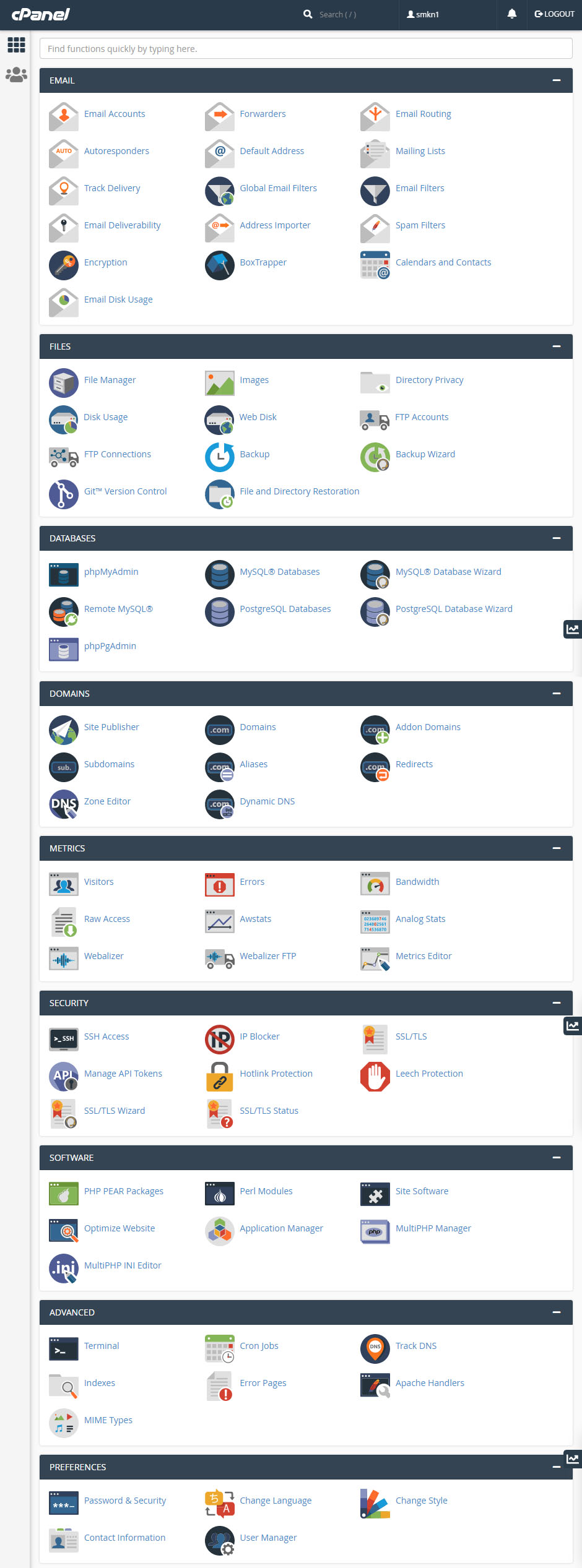 • Websites & Domains. Tools yang tersedia disini ditujukan untuk menambah dan menghapus domain, subdomain serta domain alias. Juga tersedia tools untuk manajemen web hosting seperti pembuatan dan manajemen database dan manajemen user database, manajemen DNS dan manajemen sertifikat SSL.