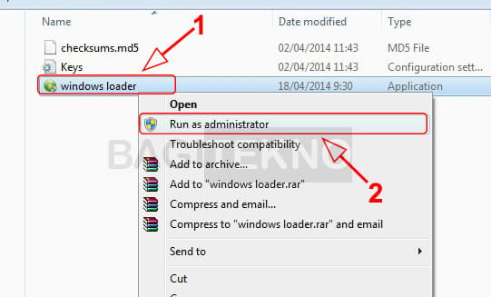 - Selanjutnya, klik kanan pada file windows loader lalu klik Run as administrator.