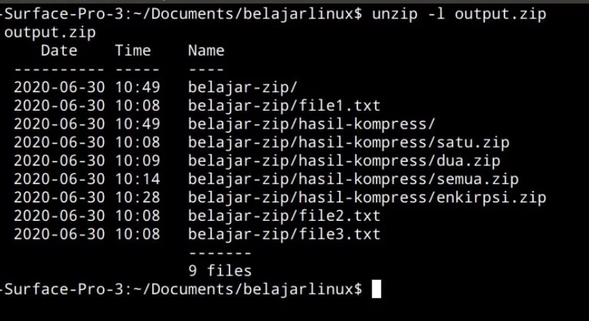 sumber : https://www.belajarlinux.org/cara-kompres-dan-ekstrak-zip-di-linux-terminal/