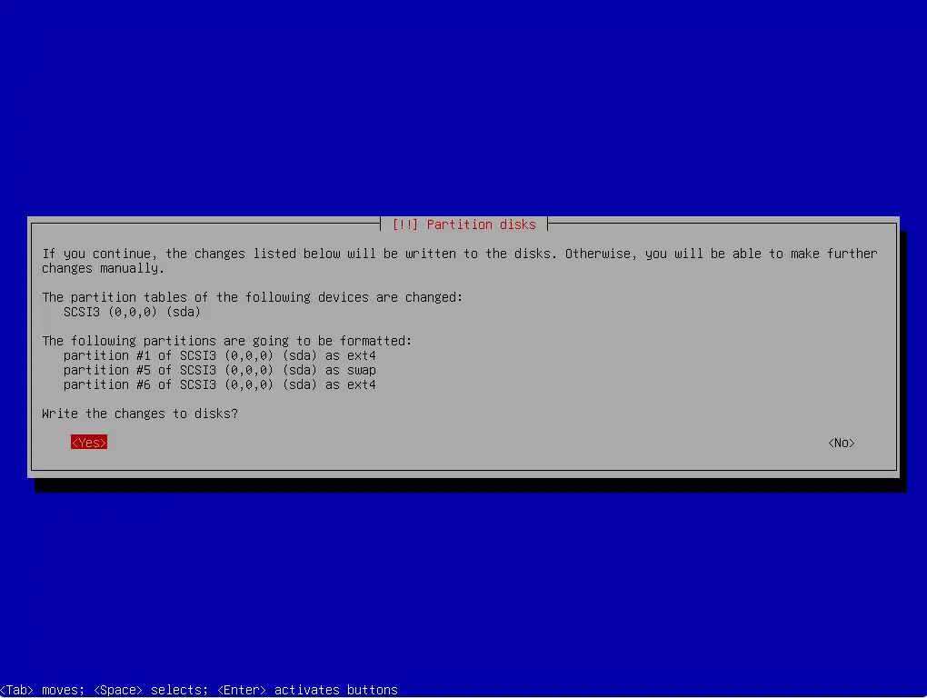 Pada pertanyaan yang muncul Write the changes to disk? pilih Yes kemudian tekan Enter