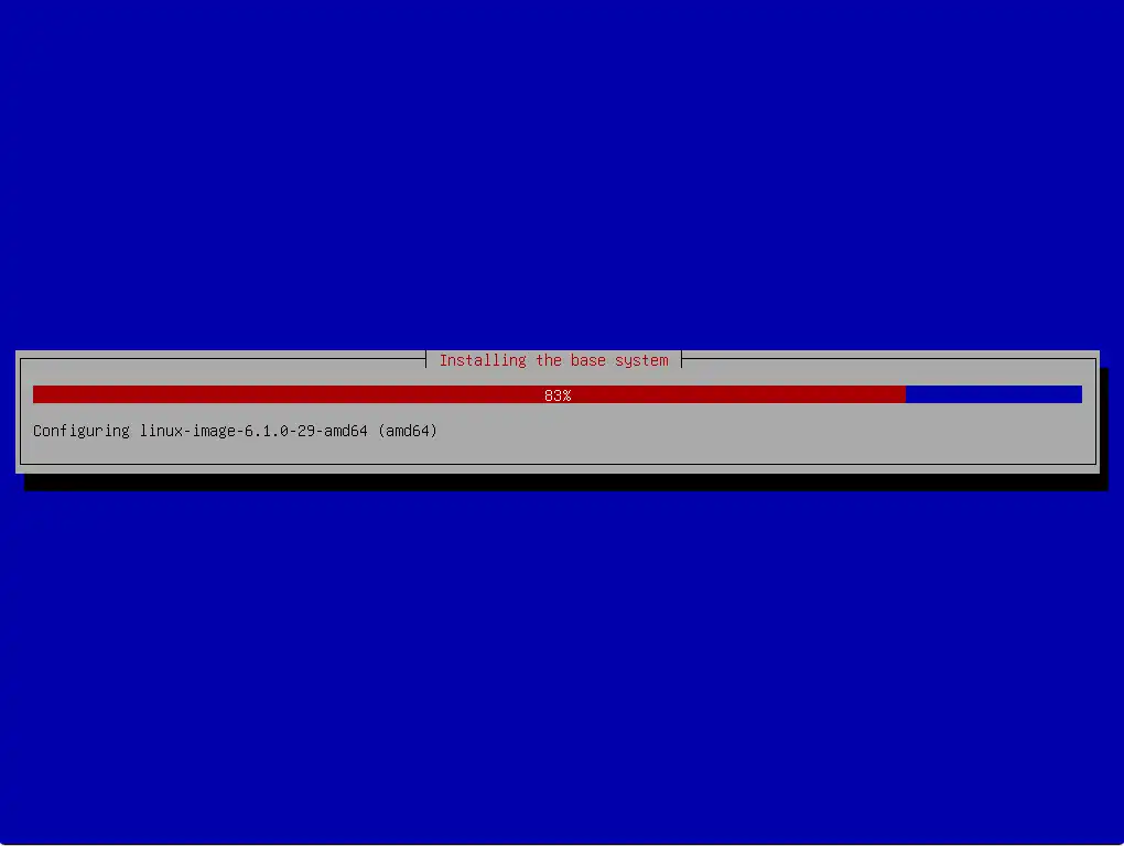 Setelah itu, partisi baru yang telah kita tentukan akan dibuat dan diformat. Selanjutnya kita tainggal menunggu proses instalasi sistem dasar debian selesai.