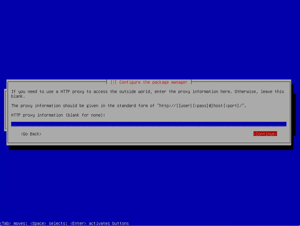 Biarkan kolom berikut kosong dan tekan Continue, Kecuali jika ingin menggunakan HTTP proxy