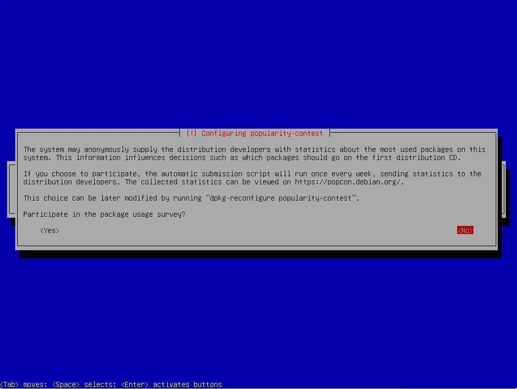 Kita dapat melewati langkah ini (survei penggunaan paket) dengan memilih No