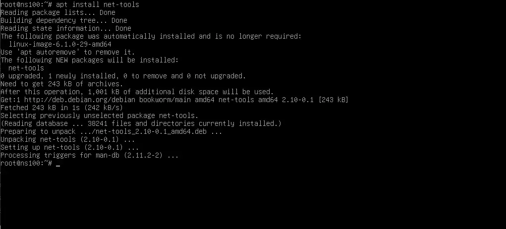 Secara default, beberapa tool jaringan tidak tersedia. Untuk itu kita harus menginstal paket nya terlebih dahulu dengan perintah berikut:
