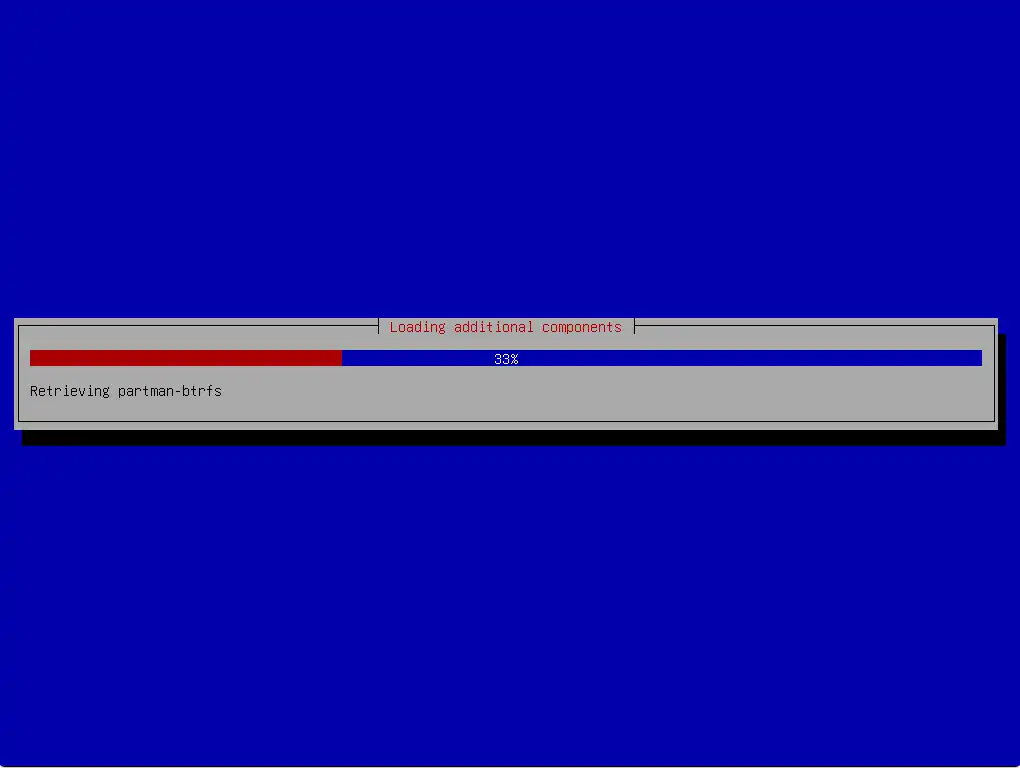 Proses berjalan dan Installer akan memeriksa CD instalasi dan perangkat keras serta mengkonfigurasi jaringan dengan DHCP jika terdapat server DHCP di jaringan.