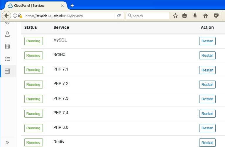 root@ns100:~# nano /etc/hosts 127.0.0.1 localhost 192.168.100.1 ns100.sekolah100.sch.id ns100 # The following lines are desirable for IPv6 capable hosts ::1 localhost ip6-localhost ip6-loopback ff02::1 ip6-allnodes ff02::2 ip6-allroutersInstall CloudPanel