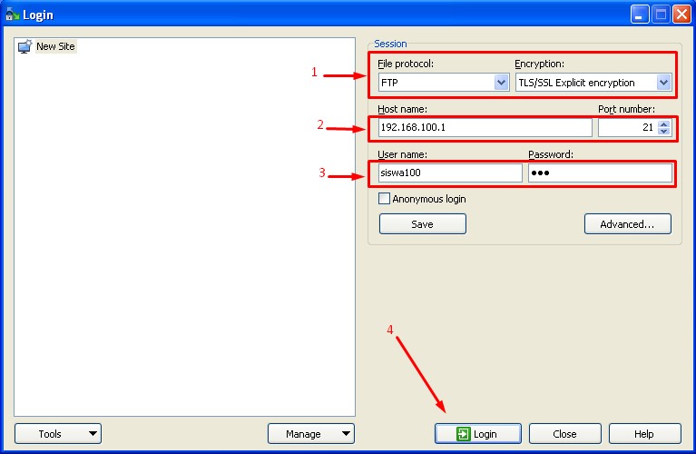 Pastikan instalasi dan konfigurasi FTP server sudah berjalan dengan baik