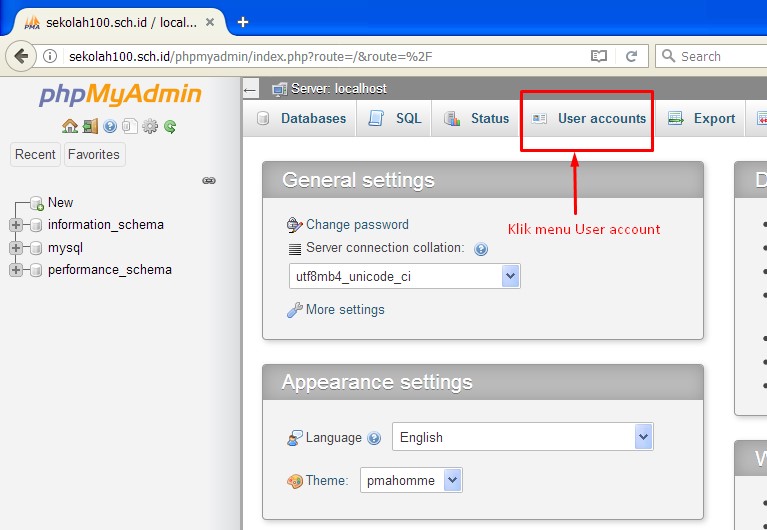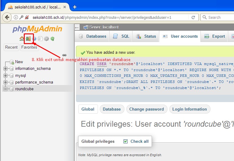 Pastikan instalasi dan konfigurasi DATABASE server sudah berjalan dengan baik