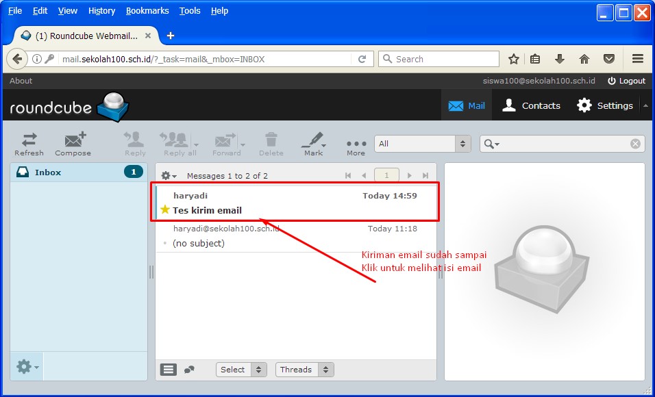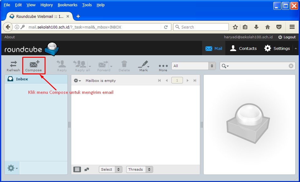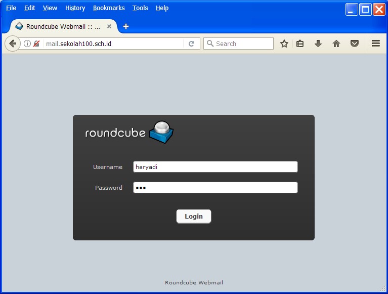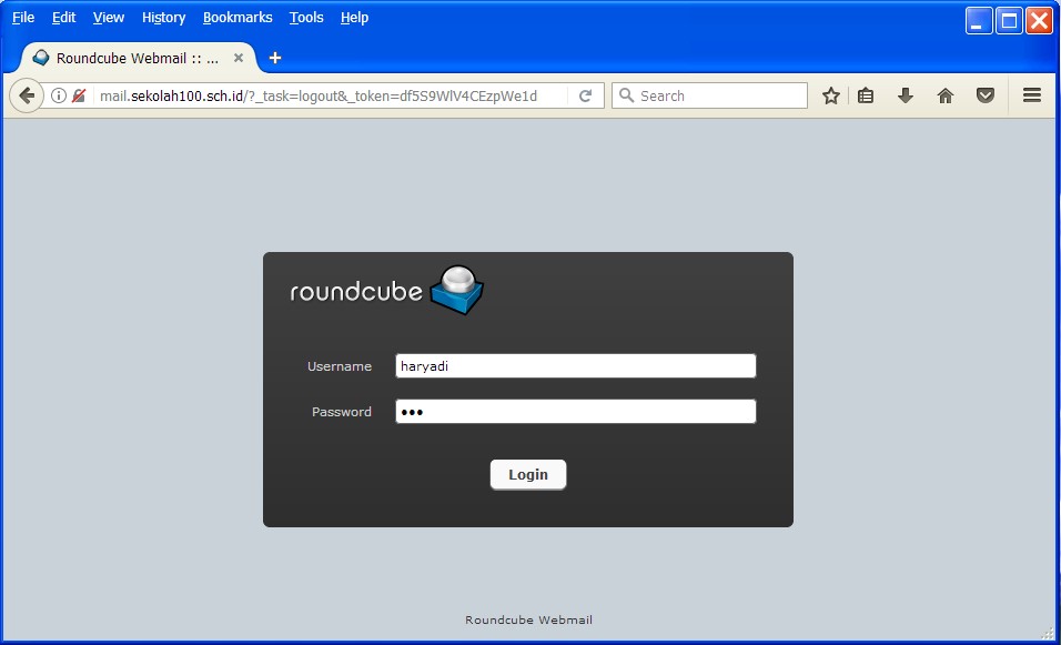 Buka browser kemudian ketikan alamat email mail.sekolah100.sch.id gunakan akun haryadi