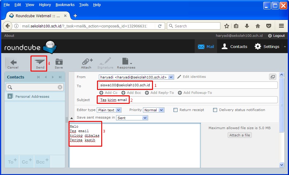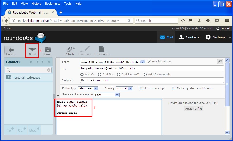 4. Klik menu (Send) untuk memproses pengiriman email ke akun siswa100