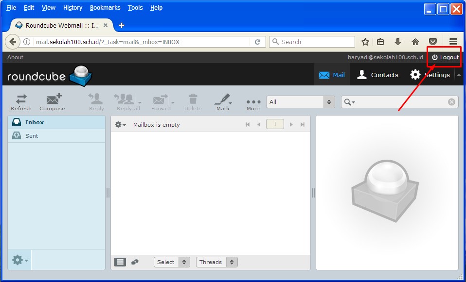 Klik Logout untuk keluar dari halaman webmail roundcube