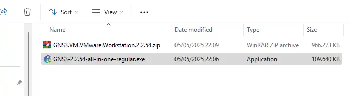 Navigasikan di Windows Explorer ke folder Unduhan Anda, lalu klik dua kali file GNS3-2.2.54-all-in-one-regular.exe: