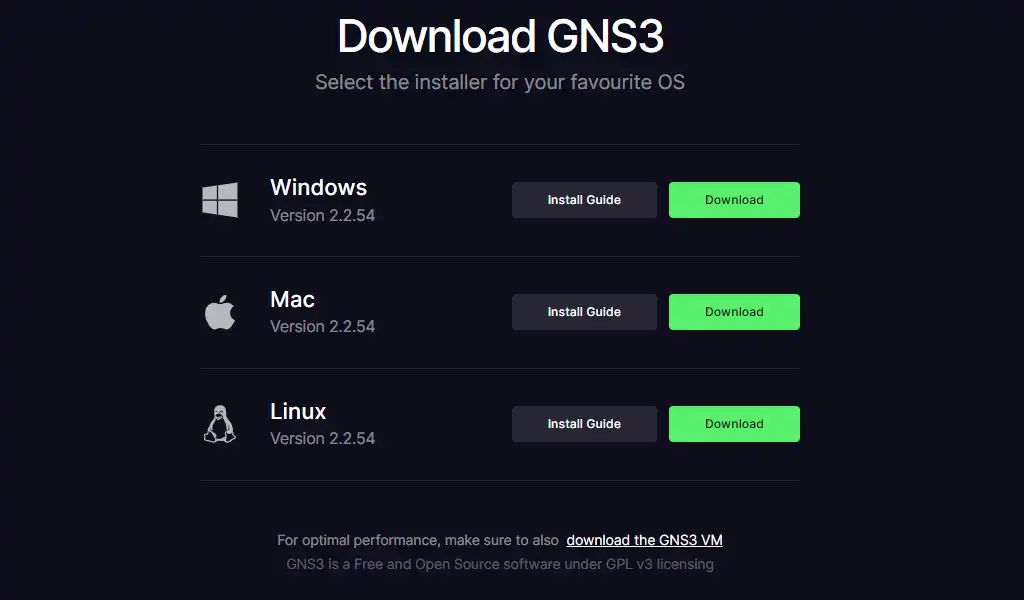 Setelah login, Kita akan diminta untuk memilih versi GNS3 yang akan diunduh. Dalam panduan ini, kita akan memilih instalasi Windows. Klik tombol Download untuk mengunduh paket GNS3-all-in-one.