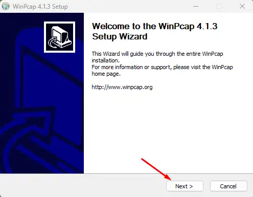 Klik Next untuk melanjutkan instalasi WinPcap