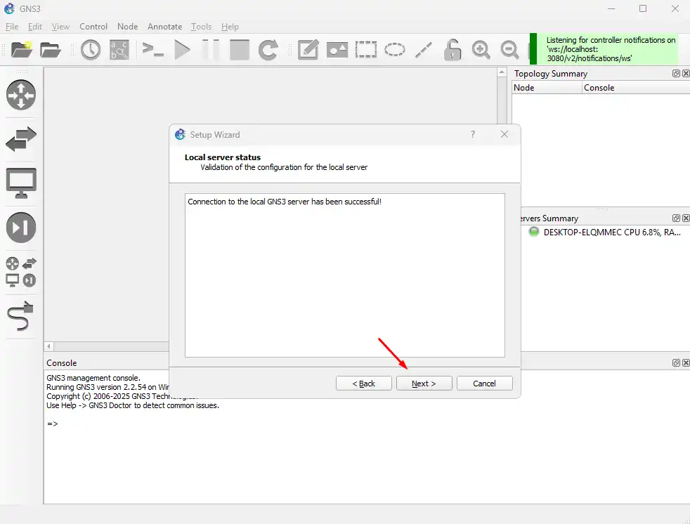 Pada tampilan Wizard Pengaturan GNS3, Klik Next untuk memulai instalasi