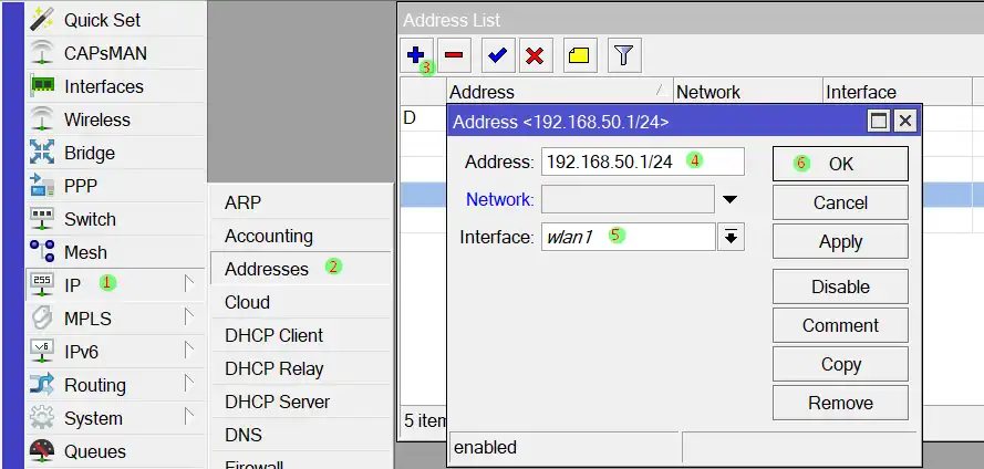 4. Ketikkan IP Address untuk wifi (192.168.50.1/24)