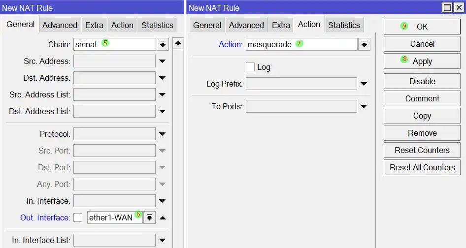 1. Pada tab General untuk parameter Chain pilih srcnat