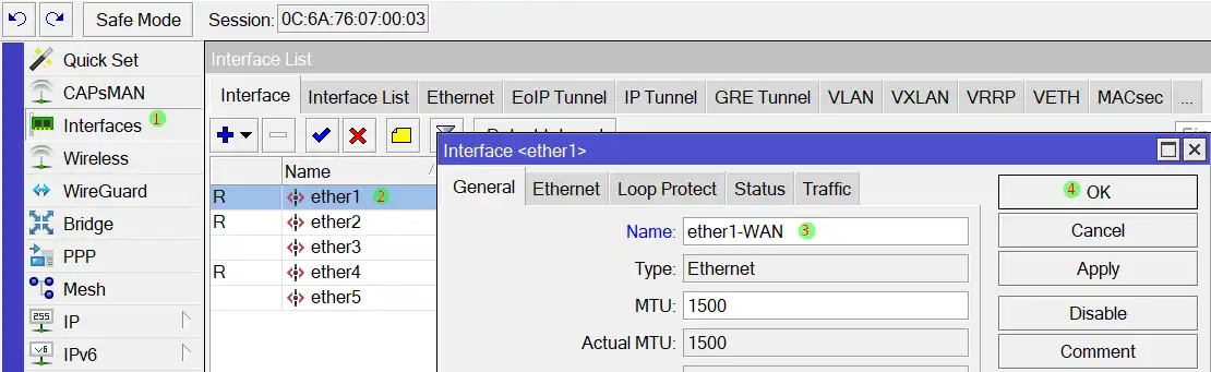 4. Pilih ether1-WAN