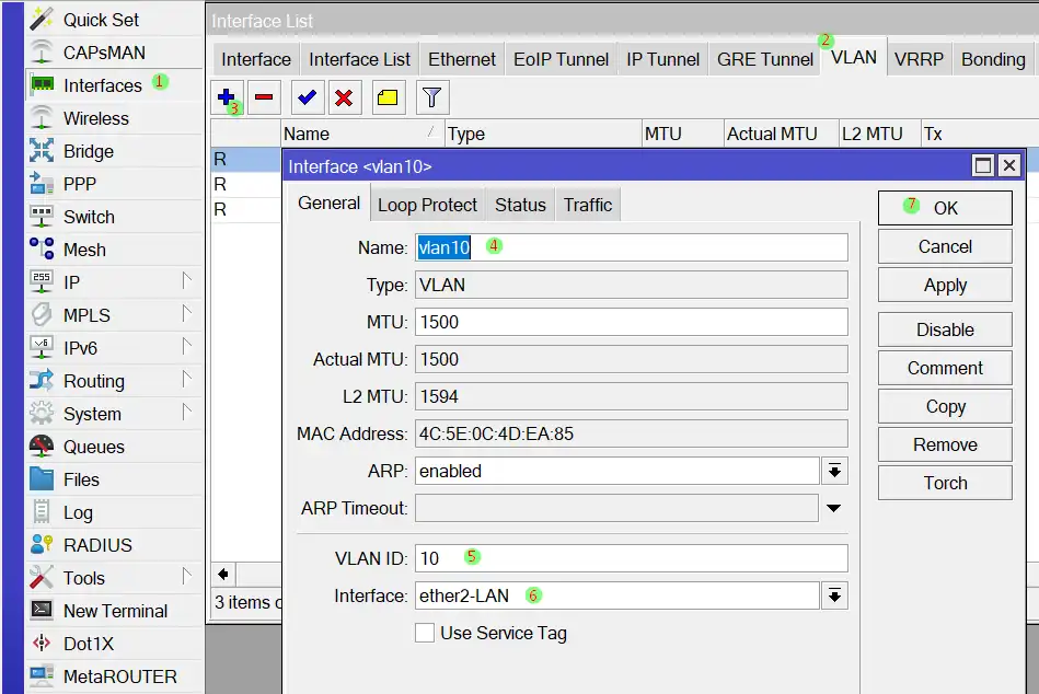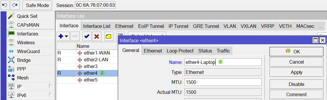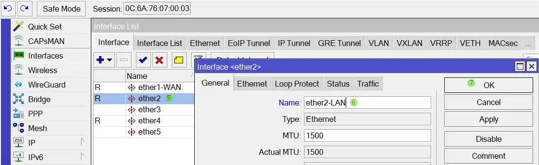 6. Pilih interface ether2-LAN