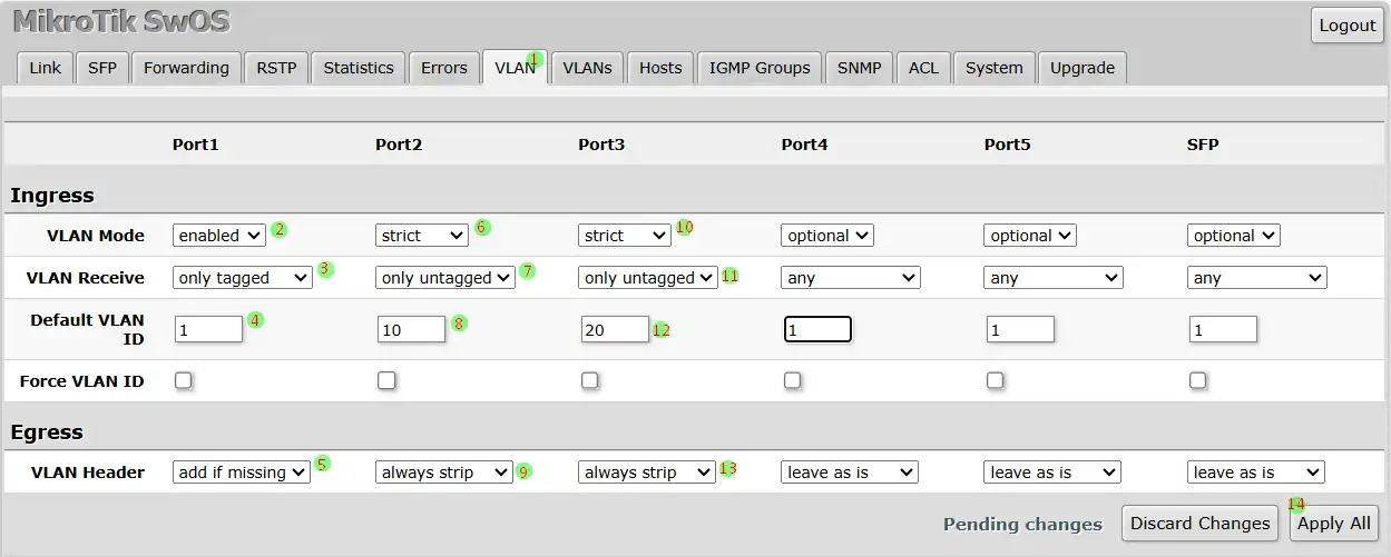 Konfigurasi di menu VLANS