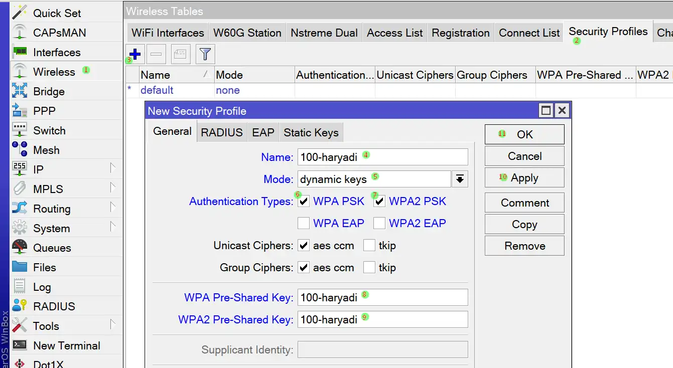 9. Ketikkan juga yg sama untuk WPA2 Pre-Shared Key