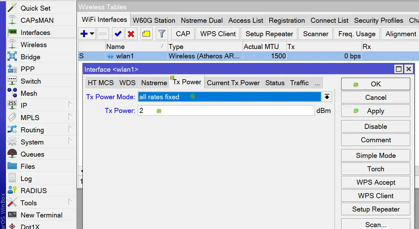 2. Gunakan all rates fixed untuk mengatur daya pancar sinyal wifi