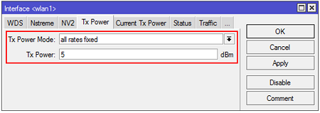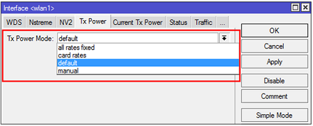 Tx Power adalah kemampuan daya pancar pada perangkat wireless. Perangkat Mikrotik memiliki Tx Power yang bervariasi, seperti 21 dbm, 29dbm hingga 31dbm.